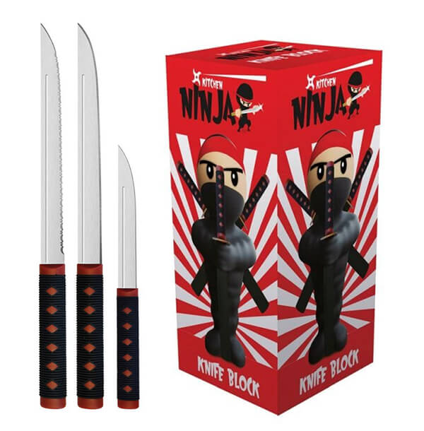 Key product features ninja shaped knife block with knives contains 3 knives: